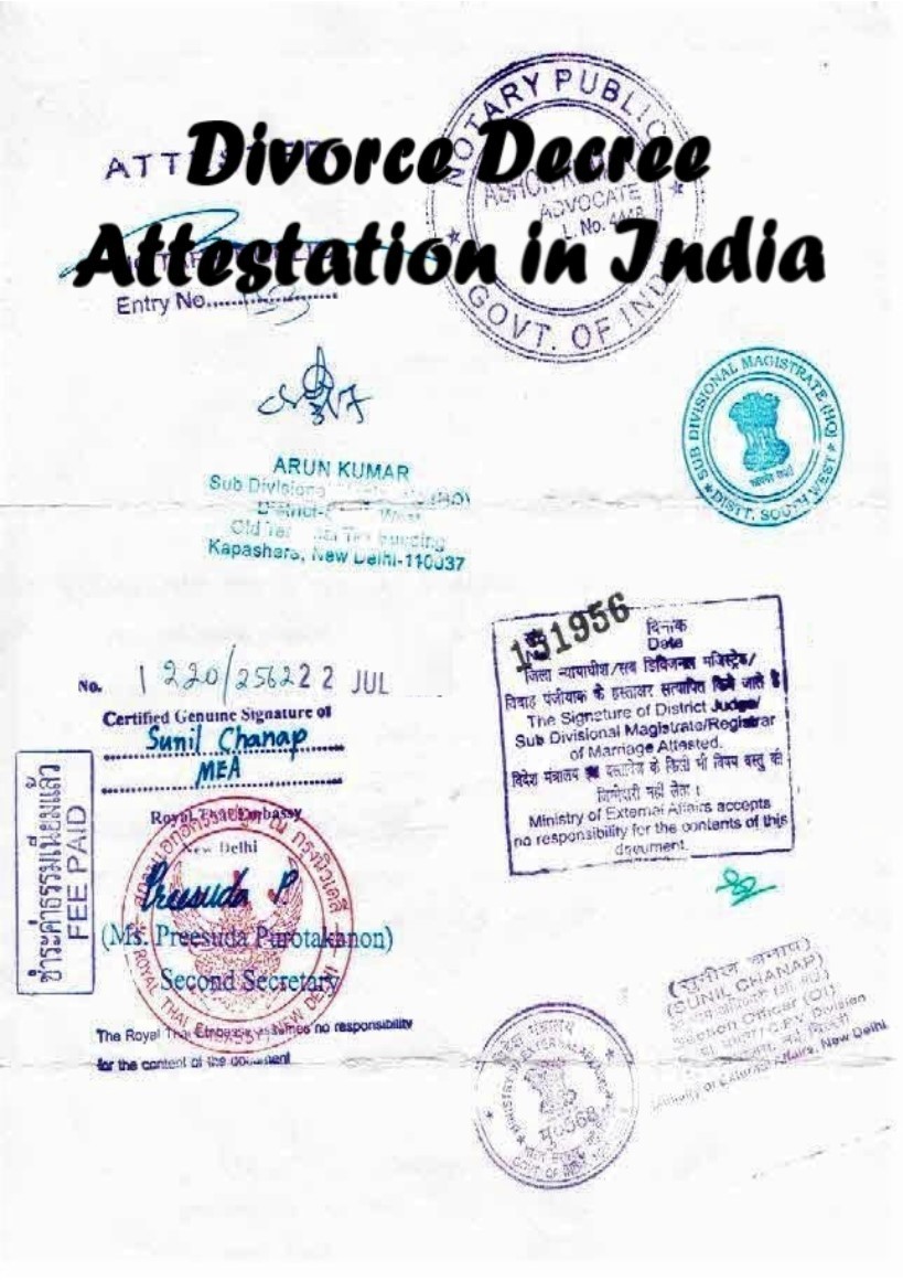 The Attestation of Divorce Decree Certificate from Home Department / GAD / RAC is a very much time consuming as well as hectic process. The process of Divorce Decree Certificate Attestation, prior Ministry of External Affairs (MEA) Certification, is different for separate states. To keep the points in focus, the MEA has given the special authority to some of the selected Sub Divisional Magistrates (SDM), Govt. of NCT-Delhi to attest the documents prior MEA, in special cases.