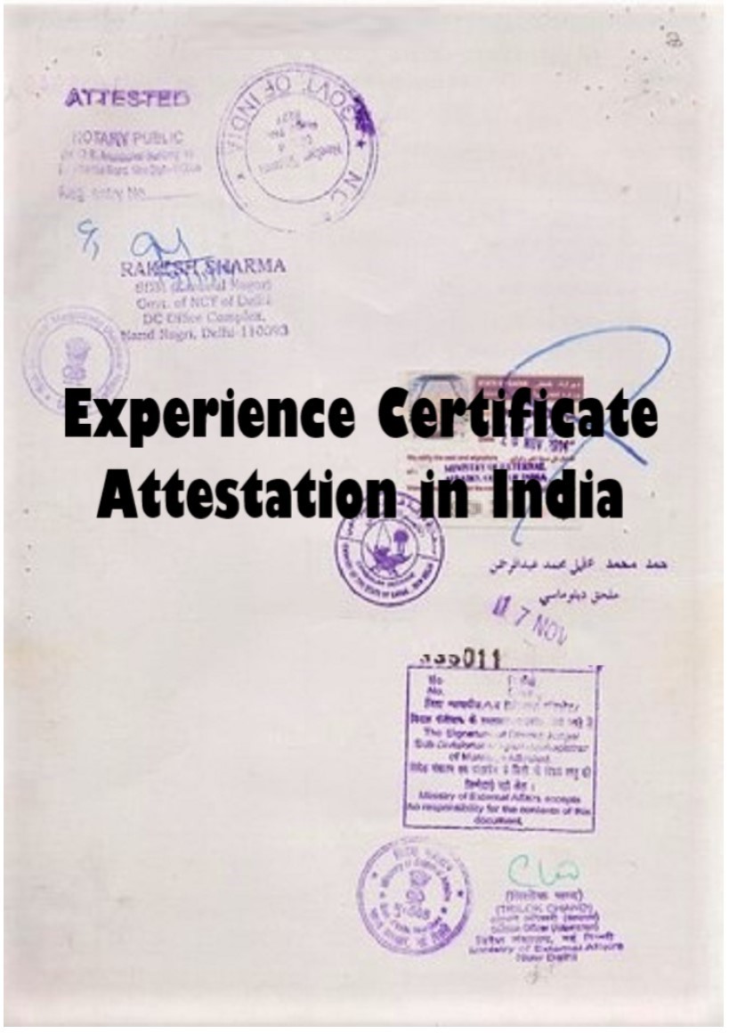 After the Attestation from GAD / RAC / Home Department the Experience Certificate Attestation will be done from Ministry of External Affairs (MEA), Government of India in New Delhi, Mumbai, Chennai, Kolkata, Hyderabad, Bangalore, Chandigarh, Guwahati Centers in India. The Attestation from MEA is the final Certification from the Home Government.